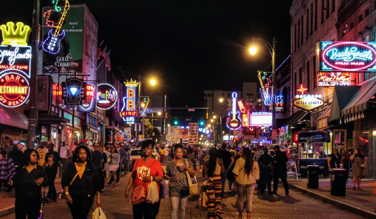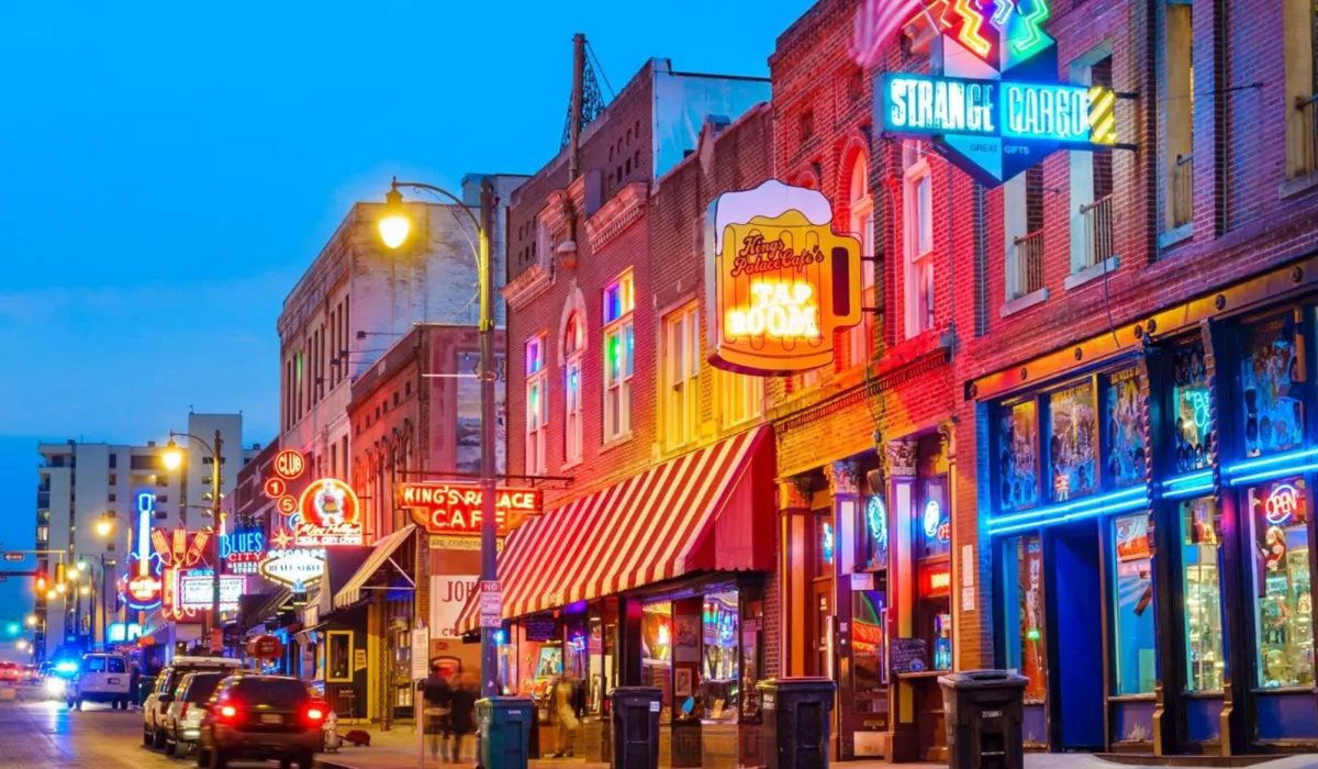 Beale Street – Live music, neon lights, and an electric atmosphere